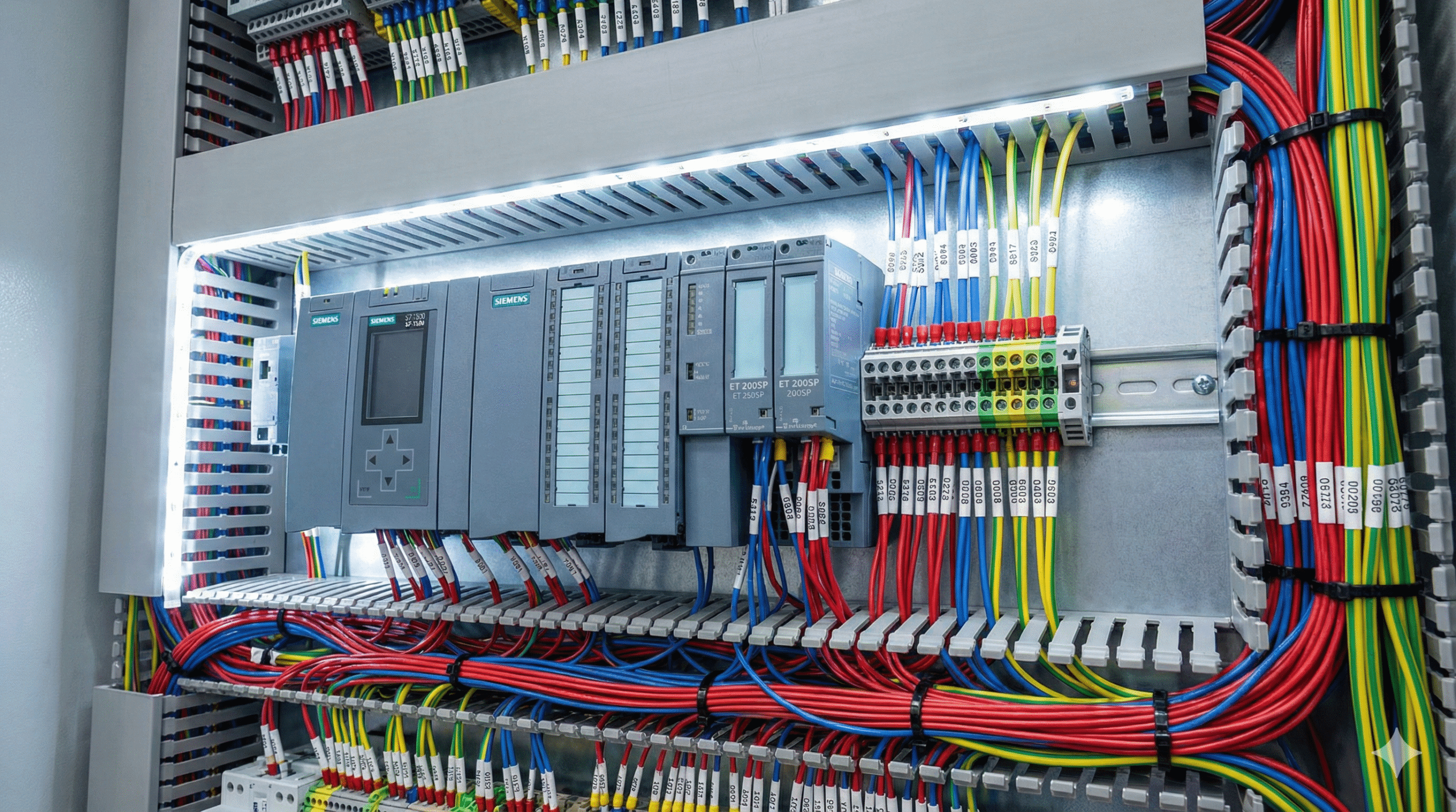 Incluye: Peinado de cables por tipo de señal, etiquetado industrial con láser, diagramas de ingeniería actualizados y segregación de potencia/control.